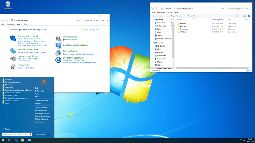 Wem jetzt das Startmenü noch nicht „griffig“ genug ist, sollte sich OpenShell Menu anschauen, den inoffiziellen Nachfolger des inzwischen nicht mehr weiterentwickelten ClassicShell als hochanpassbares Ersatz-Startmenü. Den Download findet ihr u.A. auf der offizellen Webseite (Setup.exe zum Installieren unter nightly builds). Bei der Installation darauf achten, dass nur das OpenShell Menu installiert wird, die anderen Sachen abhaken (für den Dateiexplorer verwenden wir ein anderes Tool!) Nach der Installation wird beim nächsten Klick auf das Startmenü das Anpassungs-Fenster von OpenShell angezeigt. Mit der Option „Windows 7 style“ gefällt mir das Startmenü schon viel besser. Unter Skins hat man noch die Möglichkeit, verschiedene Aussehen für die Oberfläche (ganz klassisch, wie 7, 8 oder 10) auszuwählen. Das Menü reagiert flott und wirkt nicht künstlich aufgesetzt.