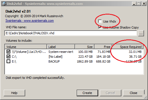 disk2vhd konfigurieren