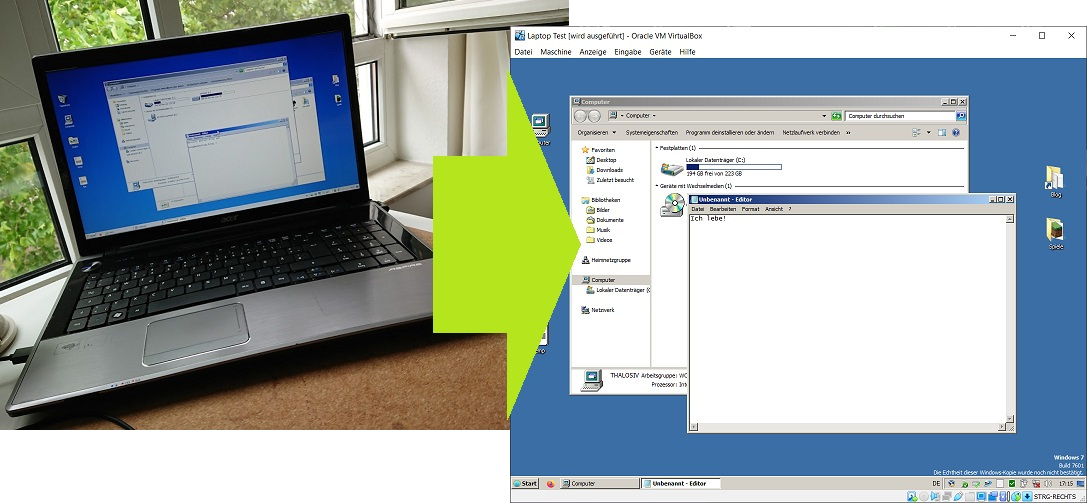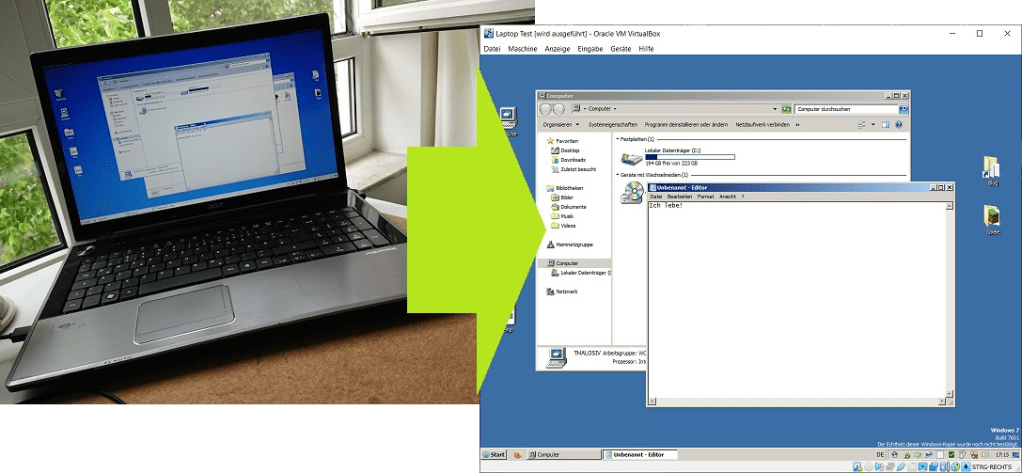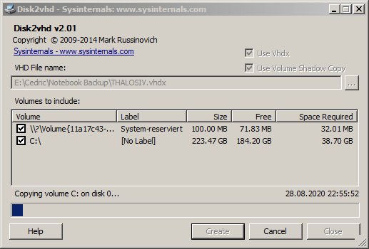 Ihr habt einen alten Rechner mit Windows 8, 7, Vista oder XP von dem ihr euch nicht trennen könnt? Sei es, weil ihr auf ein altes Programm angewiesen seit, eine Backup-Möglichkeit sucht oder einfach der Erinnerung halber. Mit dieser Anleitung könnt ihr eure gesamte Windows-Installation einlesen, in eine virtuelle Festplatte konvertieren und auf einem anderen Rechner im VirtualBox-Fenster starten. Konserviert für die Ewigkeit! 🙂 Ich habe das Programm disk2vhd bereits 2015 einmal auf meinem Blog vorgestellt, es aber bisher nie ausprobiert. [1] Für diesen Beitrag habe ich mein altes Acer Aspire Notebook (ca. 2010) mit Windows 7 in eine knapp 33Gb große VHD-Datei umgewandelt.