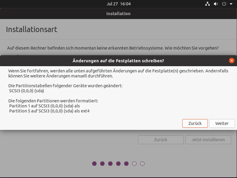 Änderungen werden erst am Datenträger vorgenommen, wenn ihr nach einem Klick auf „Jetzt installieren“ noch einmal bestätigt. Das Verkleinern der Windows-Partition kann je nach Größe einige Sekunden bis Minuten in Anspruch nehmen, währenddessen passiert nichts. Etwas Geduld!