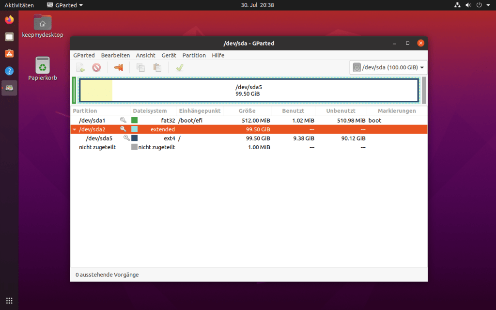Schematische Darstellung mit dem GPARTED-Partitionseditor unter Ubuntu 20.04 x64.