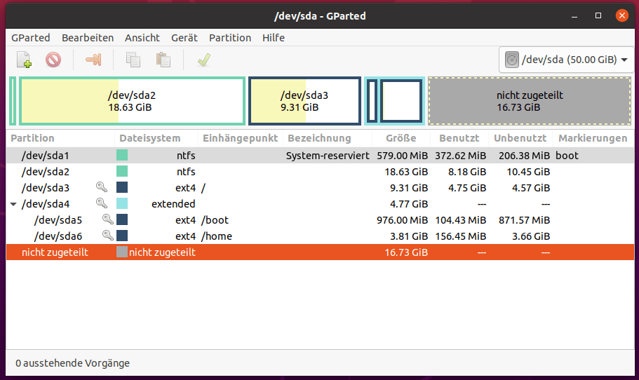 Unter Ubuntu könnt ihr zum Beispiel mit dem Partitionierungswerkzeug gparted (über den Software-Katalog) eure neue Einteilung überprüfen oder später noch einem der Betriebssysteme mehr Speicherplatz zuteilen!