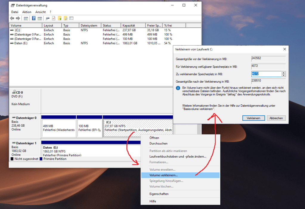 Ihr solltet euch Dual Boot zweimal überlegen, wenn die Speicherkapazität eures Datenträgers gering ist, da ihr diesen dann ja aufteilen werdet. Hinzu kommt, dass das Verkleinern einer bestehenden Datenpartition fehleranfällig und das Rückgängigmachen dieser Aktion ohne eine komplette Neuinstallation beider Betriebssysteme zum Teil sehr umständlich sein kann.