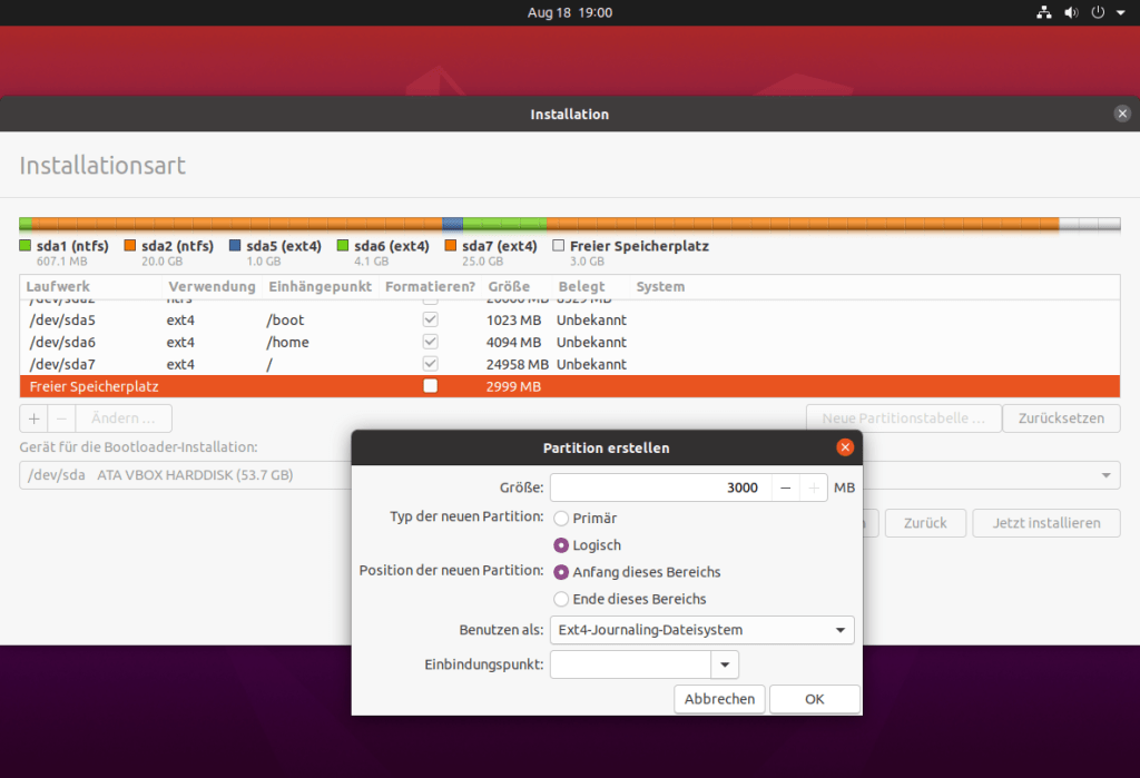 Welche Vorteile die manuelle Partitionierung bei der Installation von Ubuntu Linux bietet, habe ich im vorherigen Tagebucheintrag beschrieben!