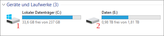 Viele User haben in ihrem Rechner inzwischen eine Doppel-Lösung mit schnellem SSD Flash-Speicher für das Betriebssystem und täglich benutzte Anwendungen sowie einer großen konventionellen Festplatte als Datenspeicher. Auch bei mir ist das der Fall, ich habe eine 250 Gb SSD sowie eine 2 Tb HDD verbaut.