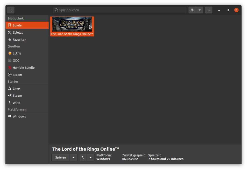 Über das Hauptfenster von Lutris können die installieren Spiele gestartet und neue Titel hinzugefügt werden,