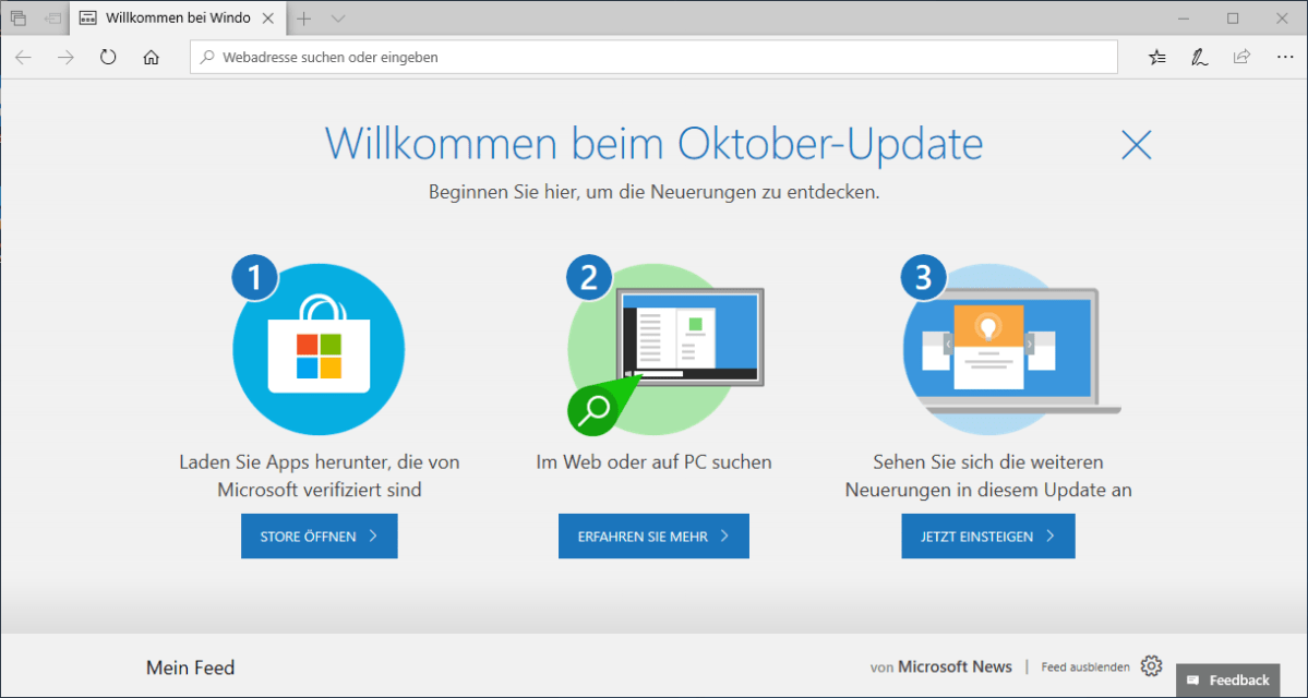 Ist Windows 10 bereits installiert, Windows Update will die Aktualisierung aber (noch) nicht finden, kann der Download mittels Klick auf „Jetzt aktualisieren“ unter derselbigen Download-Seite forciert werden (mit Edge).