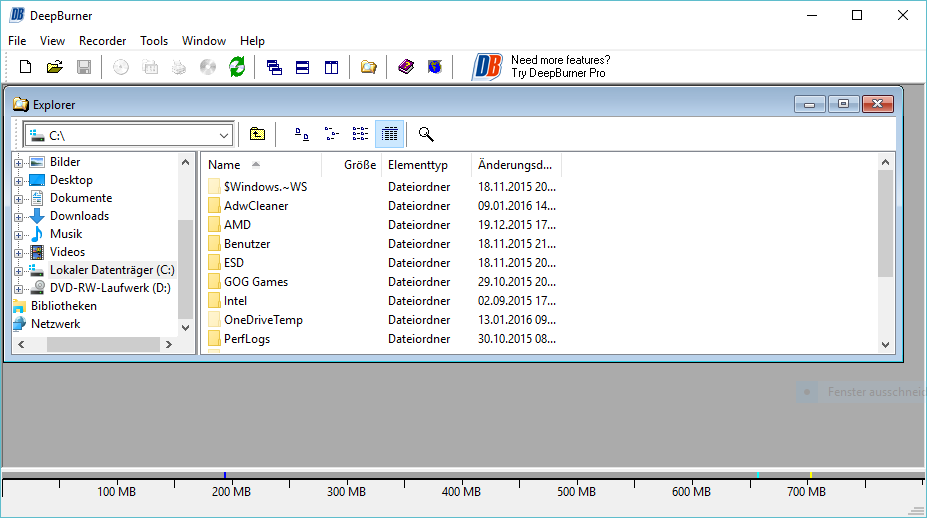 DeepBurner ist schon etwas länger im Rennen. Die kostenlose Free-Variante erstellt und brennt alle gängigen Formate. Die kostenfreie Version ist werbefrei, allerdings fehlen Funktionen wie Disk-to-Disk-Copy, DVD-Video Funktionen (Menügestaltung) und Label-Printer. Das Tool gibt es auch als portable Version und ist mit seiner Größe von 8 Mb besonders schlank. [Zum Download]